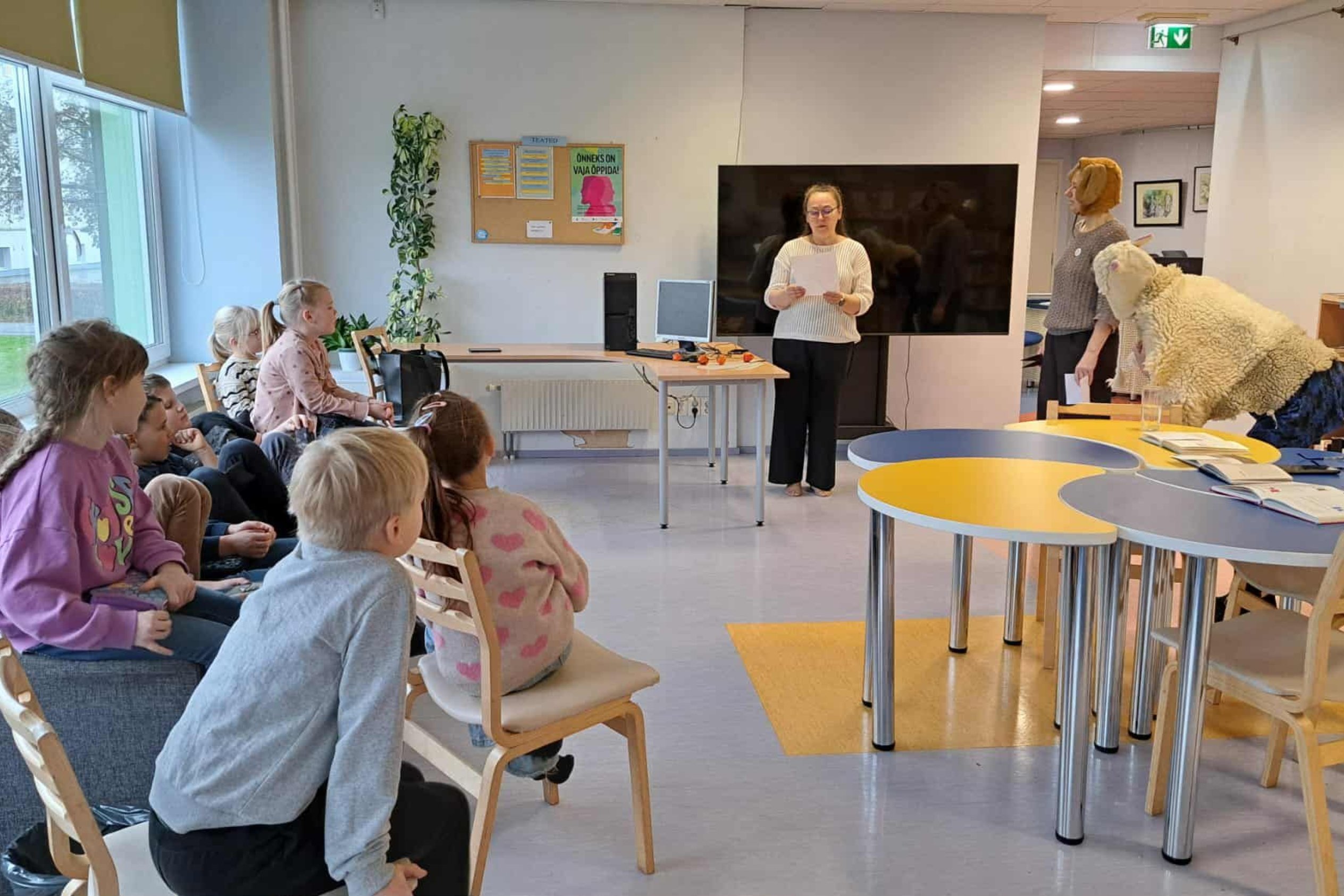28.oktoobril külastasid 2.a ja 2.b klassi õpilased raamatukogu. Lastele räägiti rahvajuttudest ning sellest, kuidas rahvajutud tekivad, kuidas need ajas ja edasi jutustades muutuvad. Esitusele tuli kaks lühinäidendit. Esimeseks oli Pärnu-Jaagupi kandist pärit jutu põhjal "Koer lambaga kohtus", mille kandsid ette raamatukoguhoidjad koostöös õpetajatega. Selle rahvajutuga selgitati, miks lambaid pügatakse ja kuidas see alguse sai. Lapsed said näha ja katsuda ehtsaid lambakääre ning lambanahka.