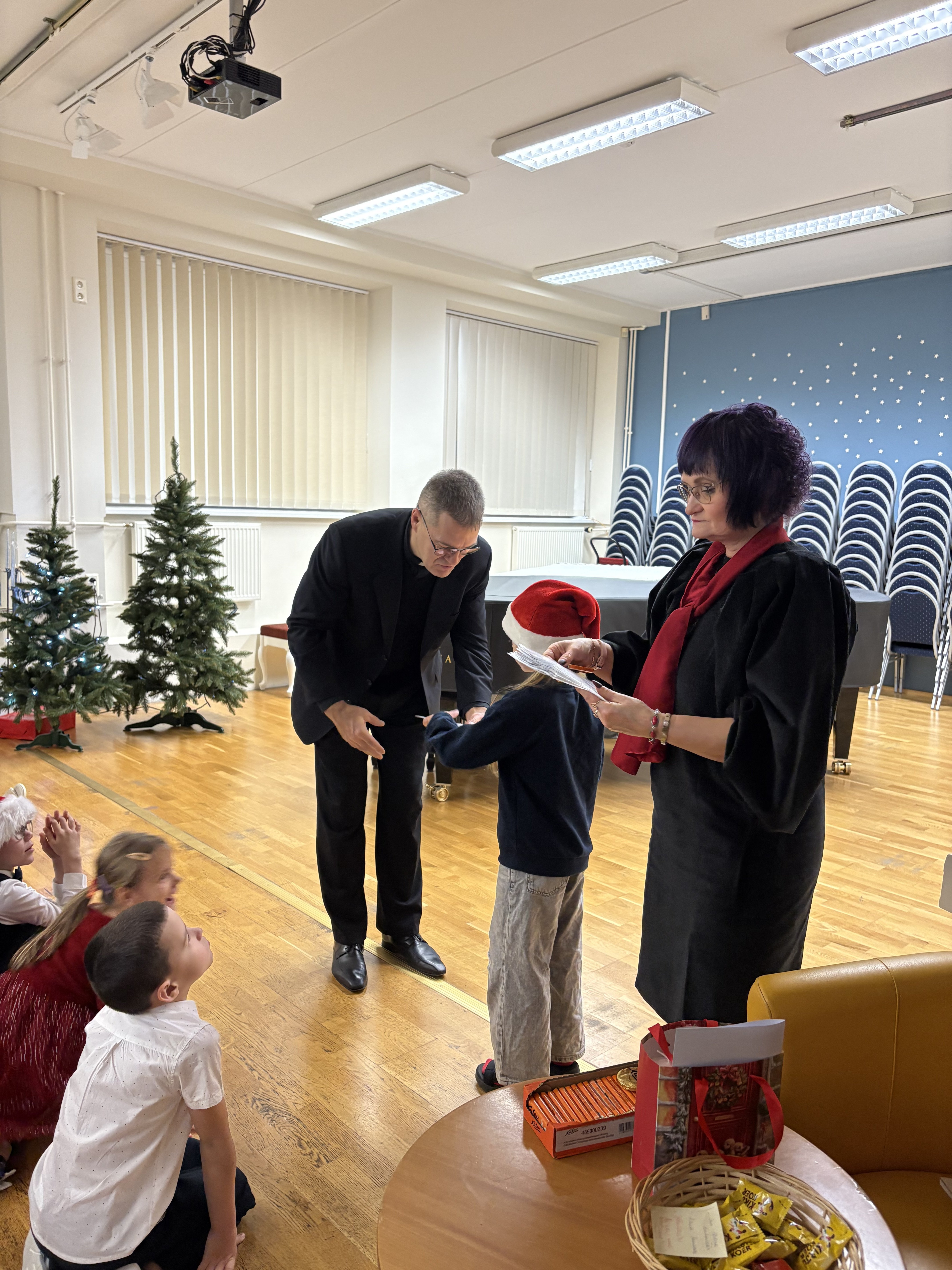 1. klassi õpilased laulsid meile toreda laulu ja esitasid julgelt kauni luuletuse. Direktor Joel rääkis jõuludest ning 1. klassi õpilased said direktori käest oma esimese tunnistuse.