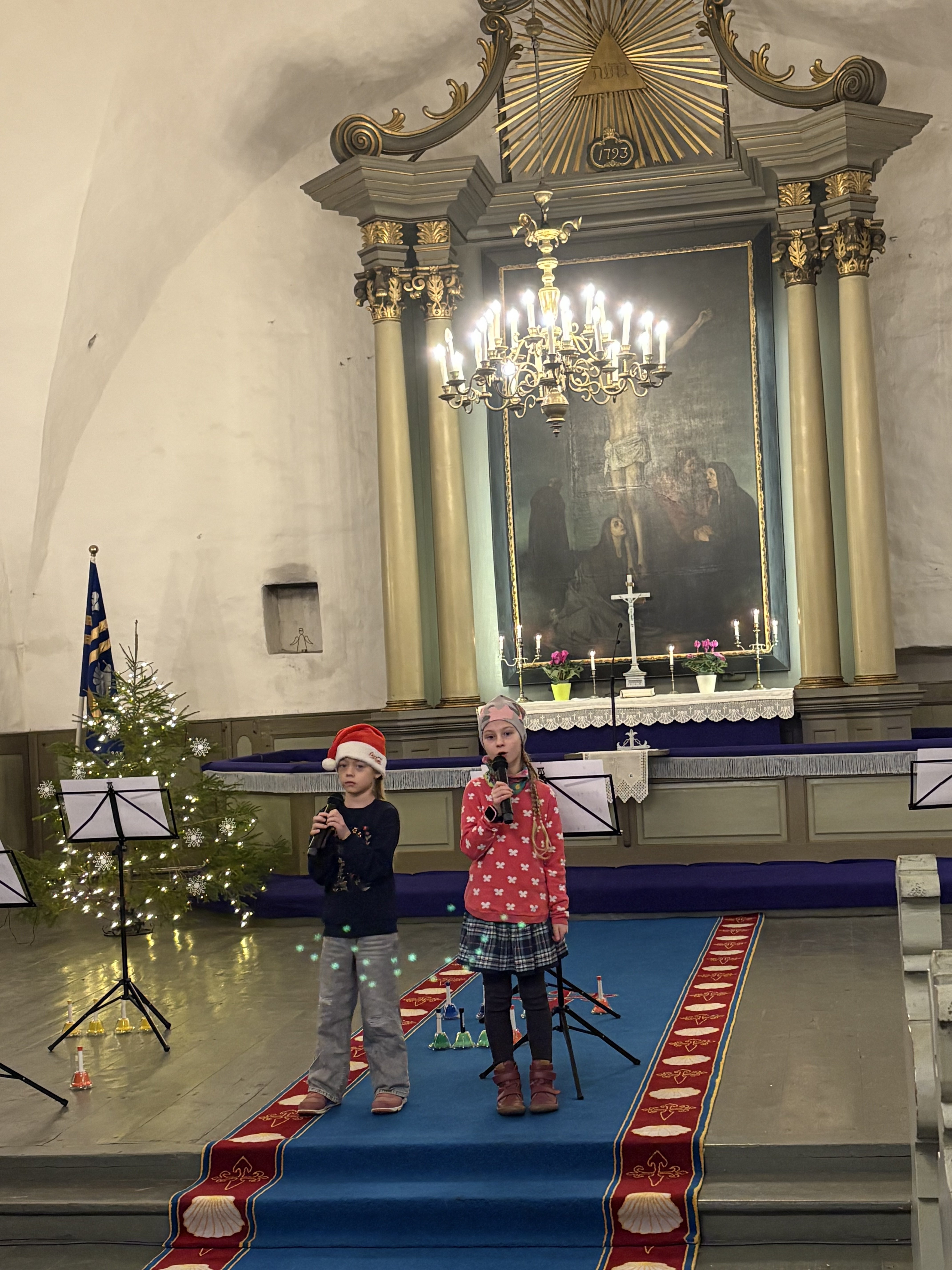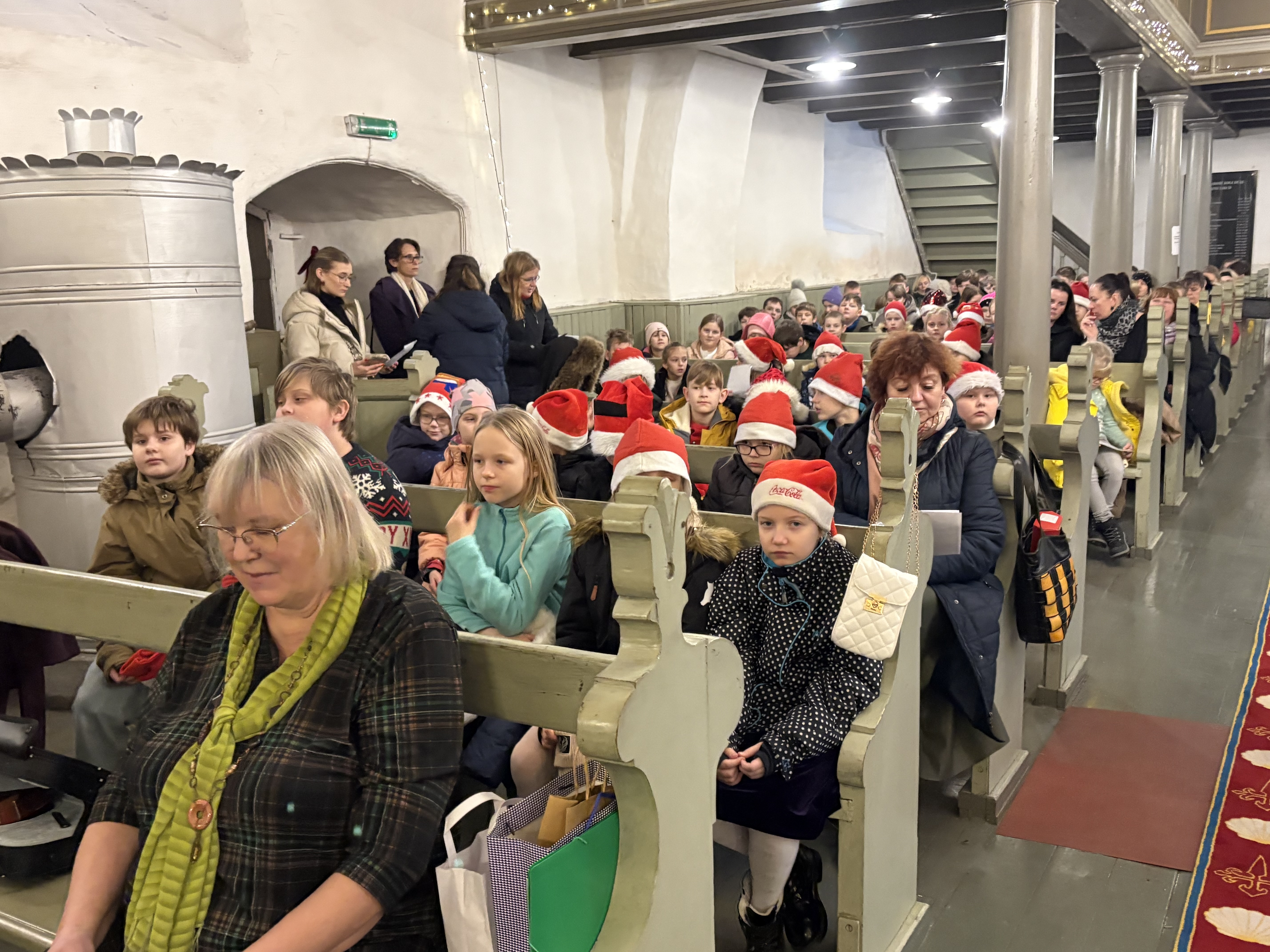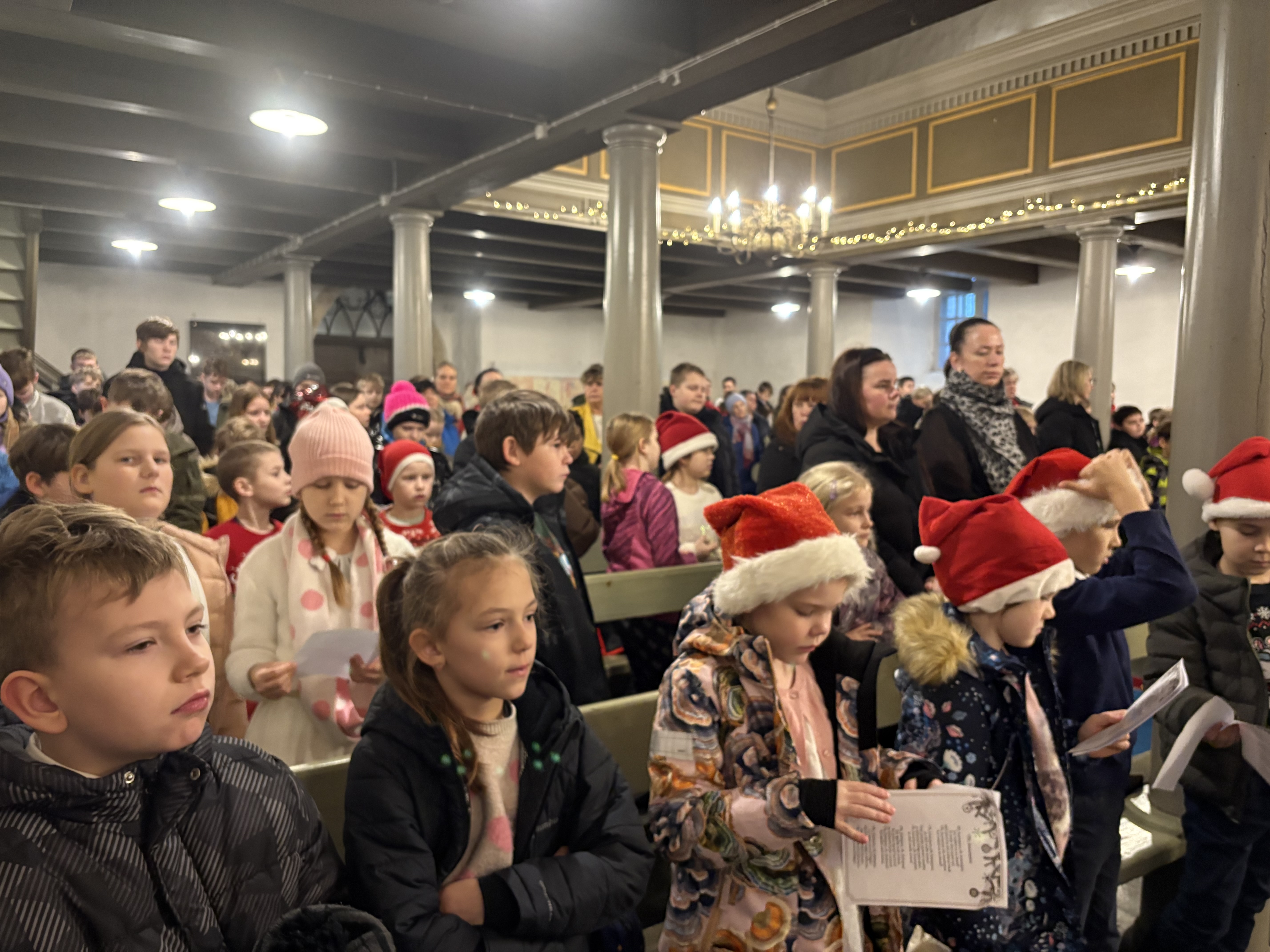 Seejärel suundusime kõik kirikusse. Meie koguduse õpetaja Kristiina Jõgi luges jõuluevangeeliumit, Joel mõtiskles jõulude üle. Kontserdil kõlasid imeilusad laulud ja pillilood, mille olid õpilastele selgeks õpetanud õpetajad Reine, Elena, Siiri ja Triin.