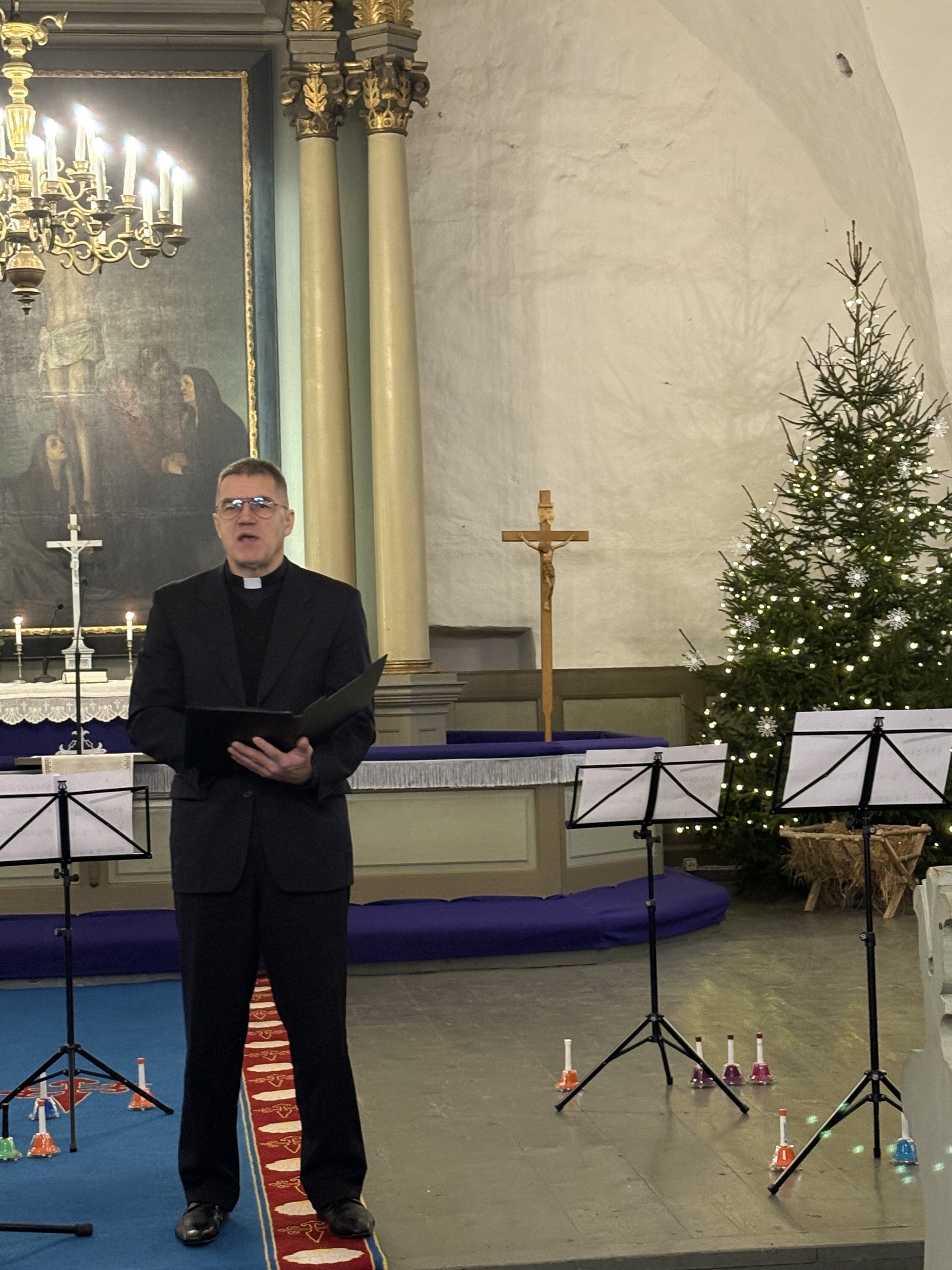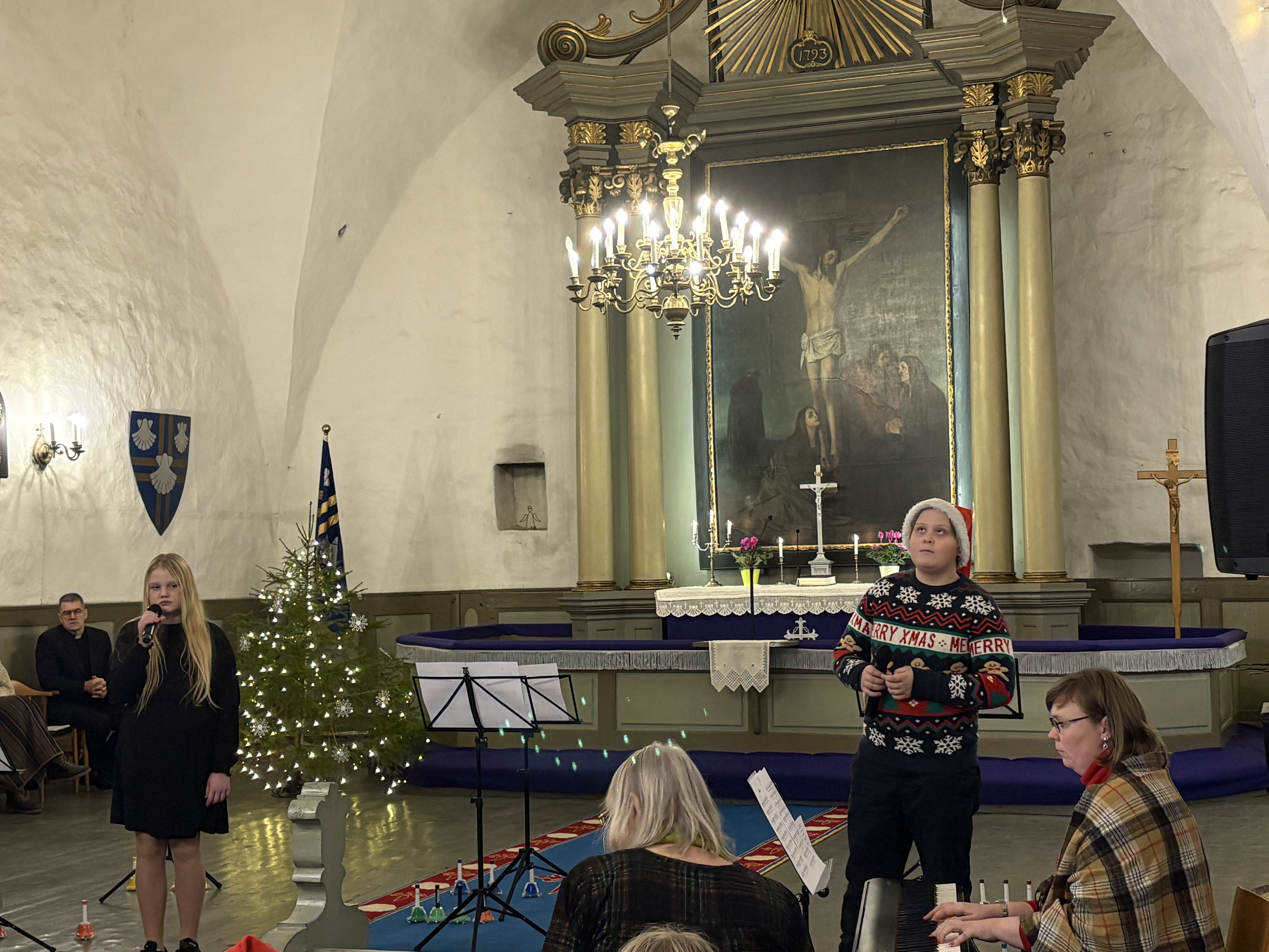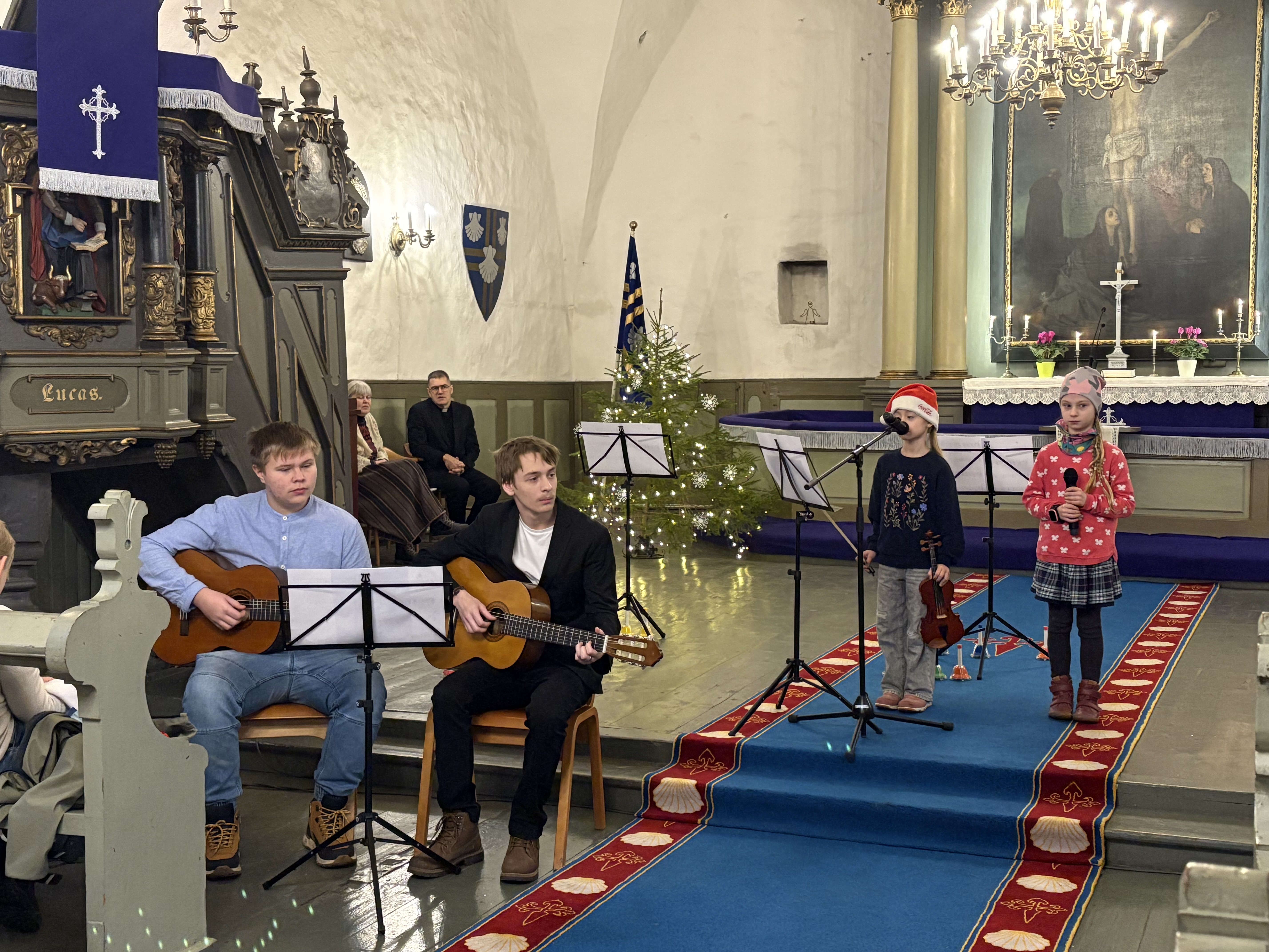 Seejärel suundusime kõik kirikusse. Meie koguduse õpetaja Kristiina Jõgi luges jõuluevangeeliumit, Joel mõtiskles jõulude üle. Kontserdil kõlasid imeilusad laulud ja pillilood, mille olid õpilastele selgeks õpetanud õpetajad Reine, Elena, Siiri ja Triin.