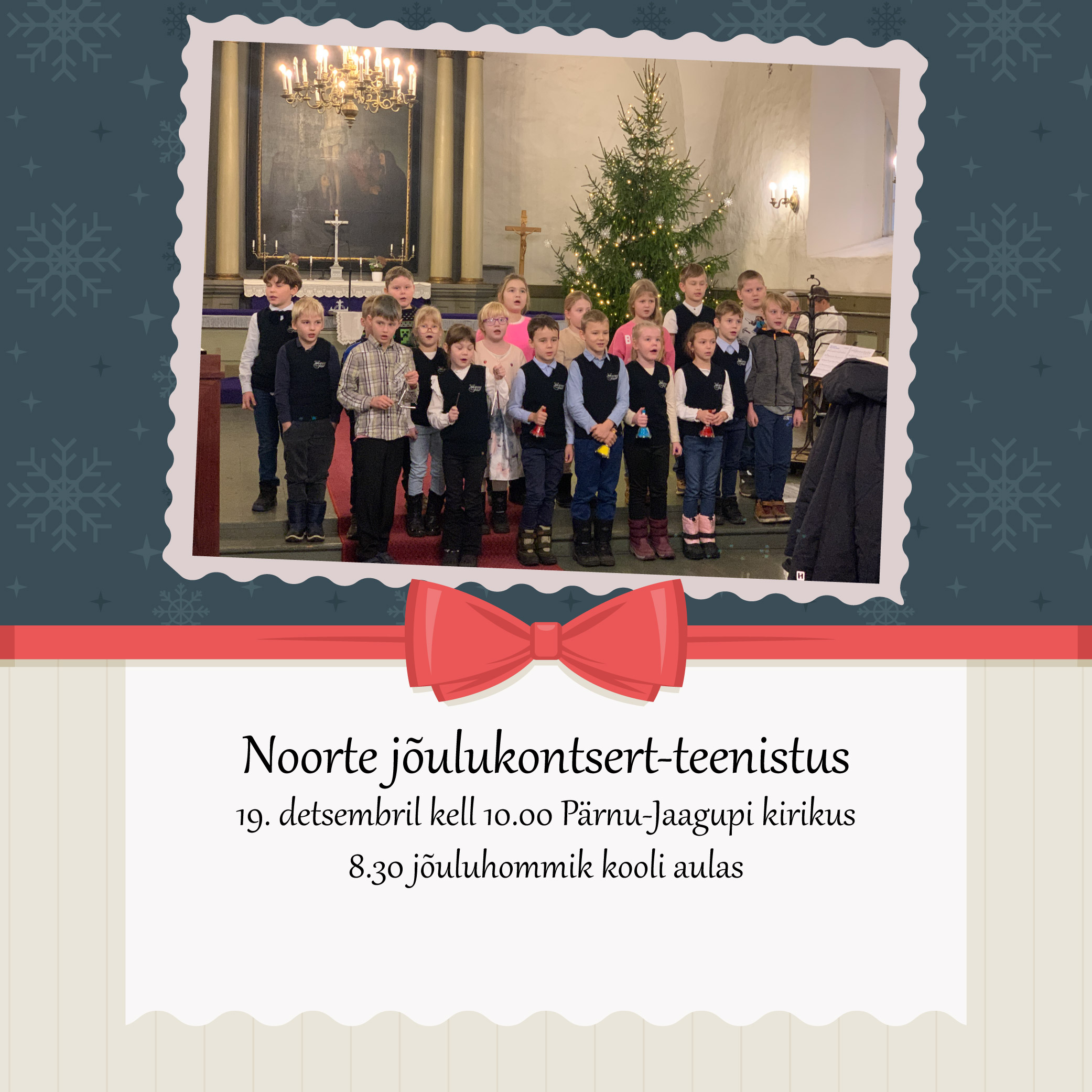 19. detsembril kell 10.00 Pärnu-Jaagupi kirikus8.30 jõuluhommik kooli aulas Ava foto Viimati muudetud 16.12.2025.