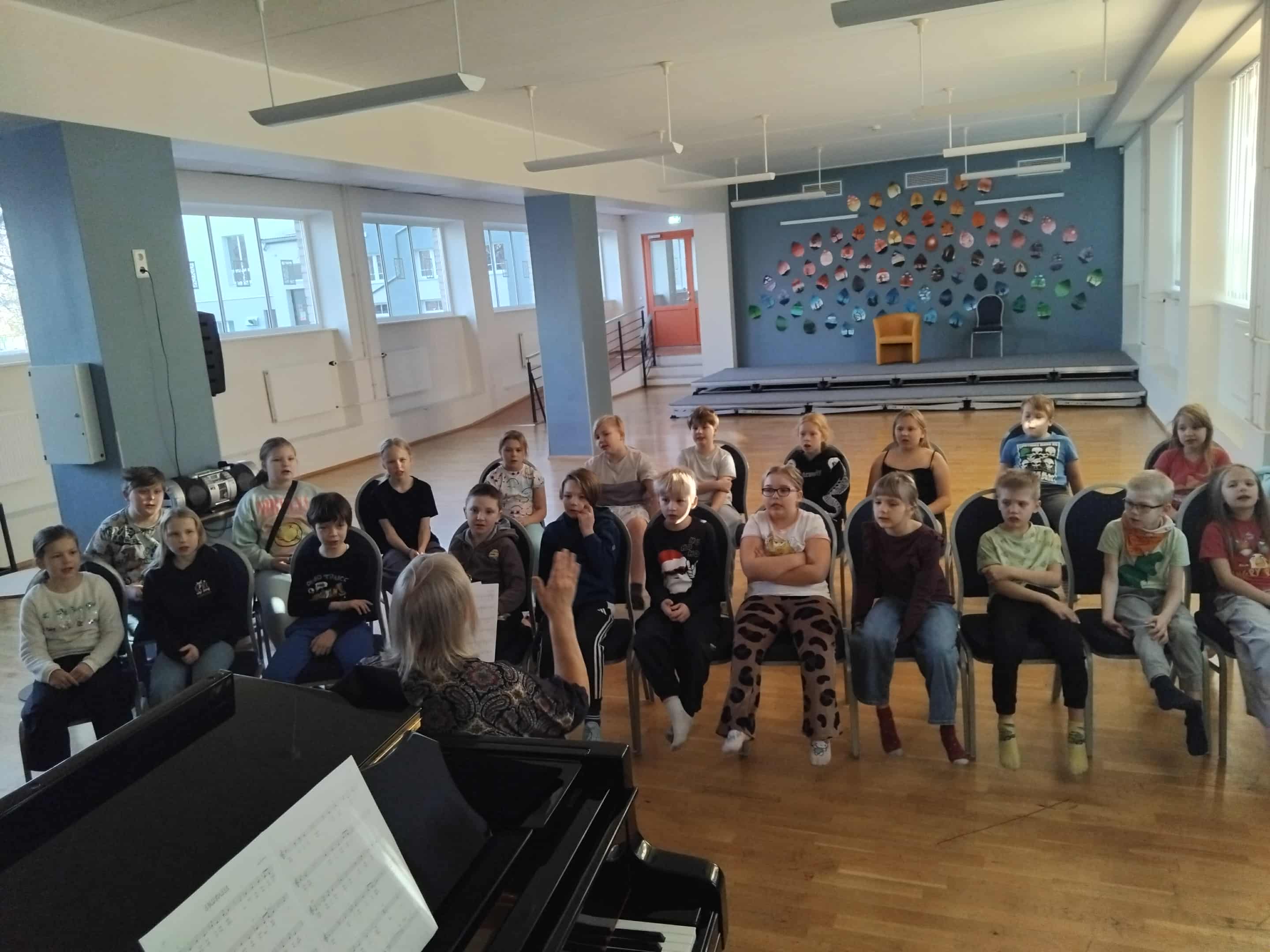 Lapsed ootasid põnevusega. Mõnele oli see päris esimene kord üksinda kodust väljas ööbida. Aga enne lõbutsemist tuli ikka hoolega tööd ka teha. Töötasime järjepanu üle kahe tunni. Ja vastu pidasime! Preemiaks sööklatädide maitsvad makaronid õhtusöögiks ja siis traditsiooniline "ühisrännak" Grossi poodi. Eks see sädistav parv tekitas üksjagu segadust, aga tänu vastutulelikele müüjatele saime raha lugemisega kenasti hakkama ja soovitud kauba kotti pistetud. Koolimajas sättisime oma magamise pesad korda ja läksime aulasse uudistama meie seenior-poiste (Raimond, Martin ja Robin) uudislavastust, mis valmis spetsiaalselt meie laagri jaoks. Edasi järgnes filmiõhtu. Enne tubaseid vaikuseminuteid sai veel usinalt ringi joosta ja ennast väsitada ning oligi aeg pea padjale panna. Nii naljakas, aga poisid väsisid seekord tüdrukutest varem ära! Laupäeva hommikul ärkasime kell 8.00, seejärel protseduurid ja õpetaja valmistatud hommikupuder-võileivad-kakao ning läkski lahti - järgmine harjutusmaraton. Väga produktiivne nädalavahetus oli. Saime selgeks kõik vajalikud jõululaulud. Nüüd saame neid tunnis viimistleda ja olemegi kontsertideks valmis. Proovime sellel aastal midagi suuremat ette võtta ja meie mõnus mudilaskoor on alguse juba teinud.