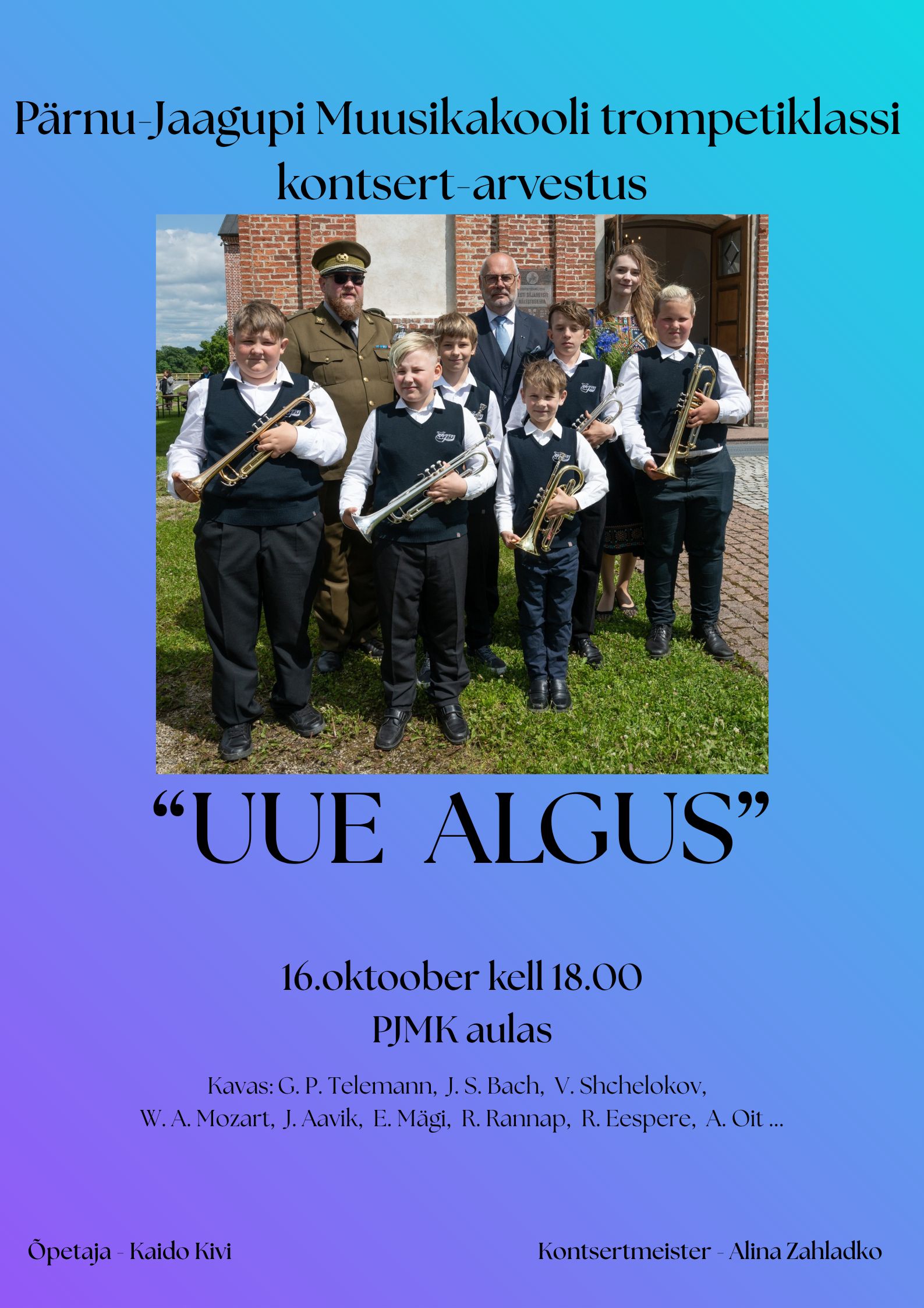 Õpetaja Kaido Kivi. Kontsertmeister Alina Zahladko.
