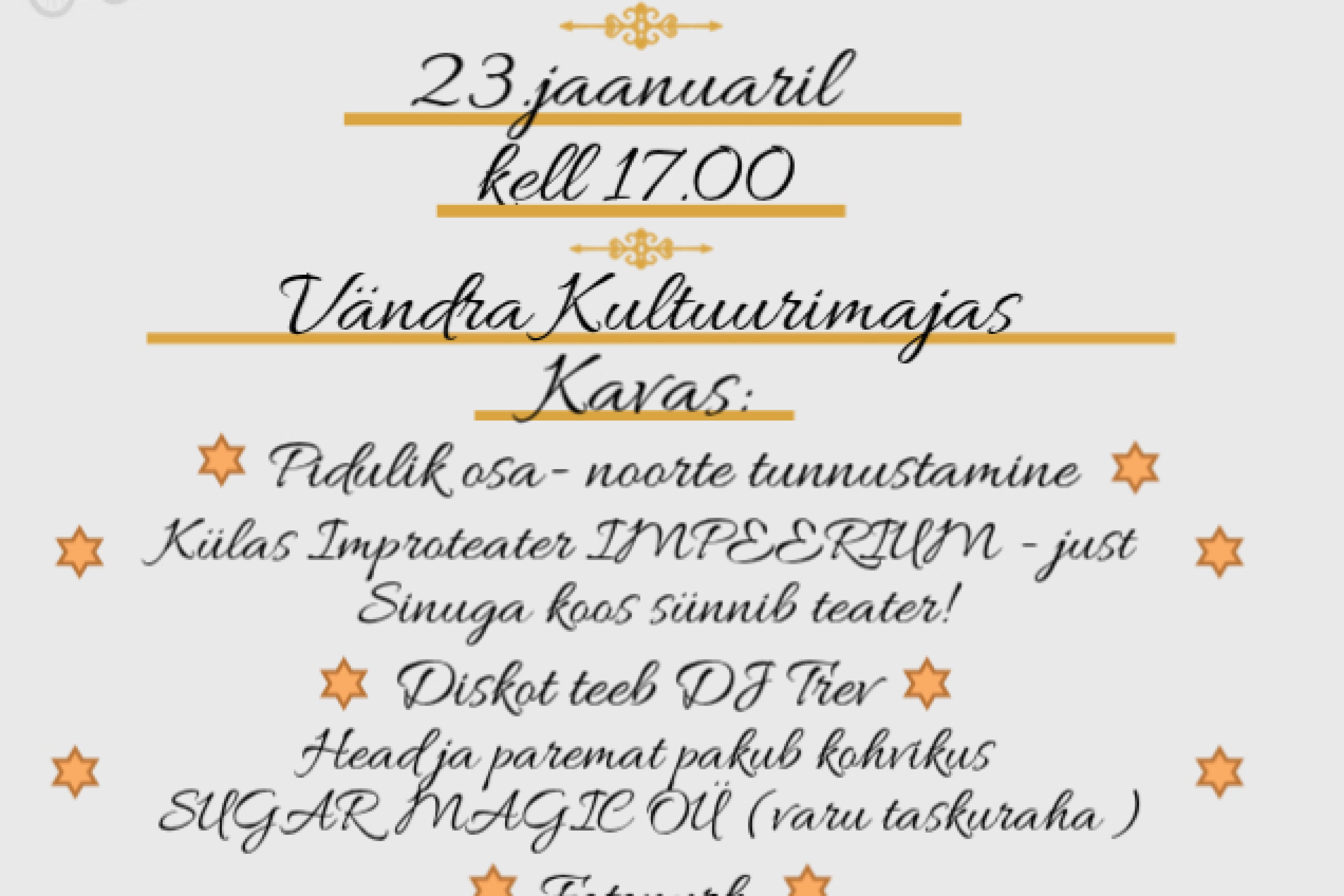 Sellel reedel 23. jaanuaril toimub Vändra Kultuurimajas Põhja-Pärnumaa valla noortele tunnustusõhtu "Noortele tänu!".