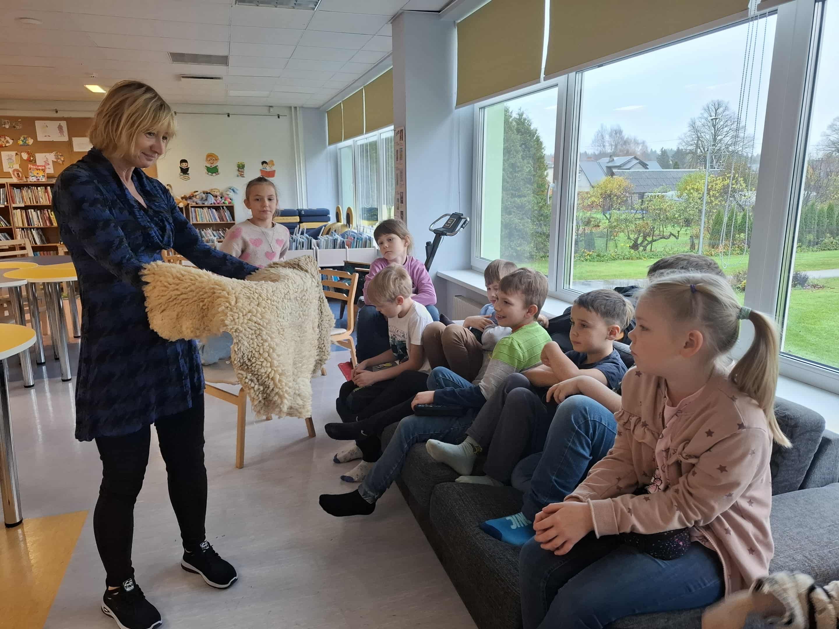 28.oktoobril külastasid 2.a ja 2.b klassi õpilased raamatukogu. Lastele räägiti rahvajuttudest ning sellest, kuidas rahvajutud tekivad, kuidas need ajas ja edasi jutustades muutuvad. Esitusele tuli kaks lühinäidendit. Esimeseks oli Pärnu-Jaagupi kandist pärit jutu põhjal "Koer lambaga kohtus", mille kandsid ette raamatukoguhoidjad koostöös õpetajatega. Selle rahvajutuga selgitati, miks lambaid pügatakse ja kuidas see alguse sai. Lapsed said näha ja katsuda ehtsaid lambakääre ning lambanahka.