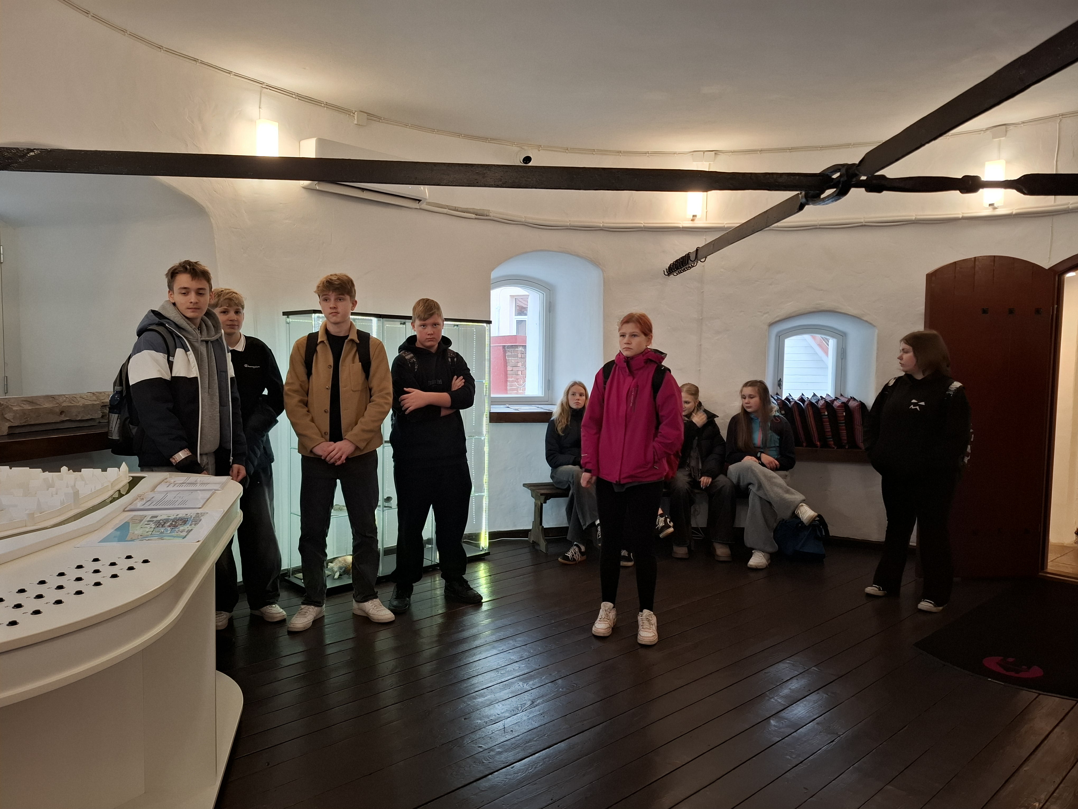 Järgmise töötoa jaoks pidime liikuma muuseumist Punasesse torni. Seal toimus töötuba linnamüüri ja tornide teemal. Saime hea ülevaate Pärnu arenemisest ja ka tules hävingutest. Lisaks saime vaadata ülemises ringauditooriumis Pärnu arengut 12000 aasta lõikes. Oli põnev meenutada õpilastega, mis sündmused olid meil kõne all eelmistes klassides ning missugused teemad ootavad veel oma aega. Kokkuvõttes oli üsna õpetlik aeg ja kui ümberkorraldused saavad tehtud, oodatakse meid osalema uuenenud muuseumi töötubadesse. Õpilased olid väga arukad ja suhtusid muuseumi pakutavasse väga hästi ning saatvatel õpetajatel Signel ja Joelil polnud raske seda õppepäeva vedada.