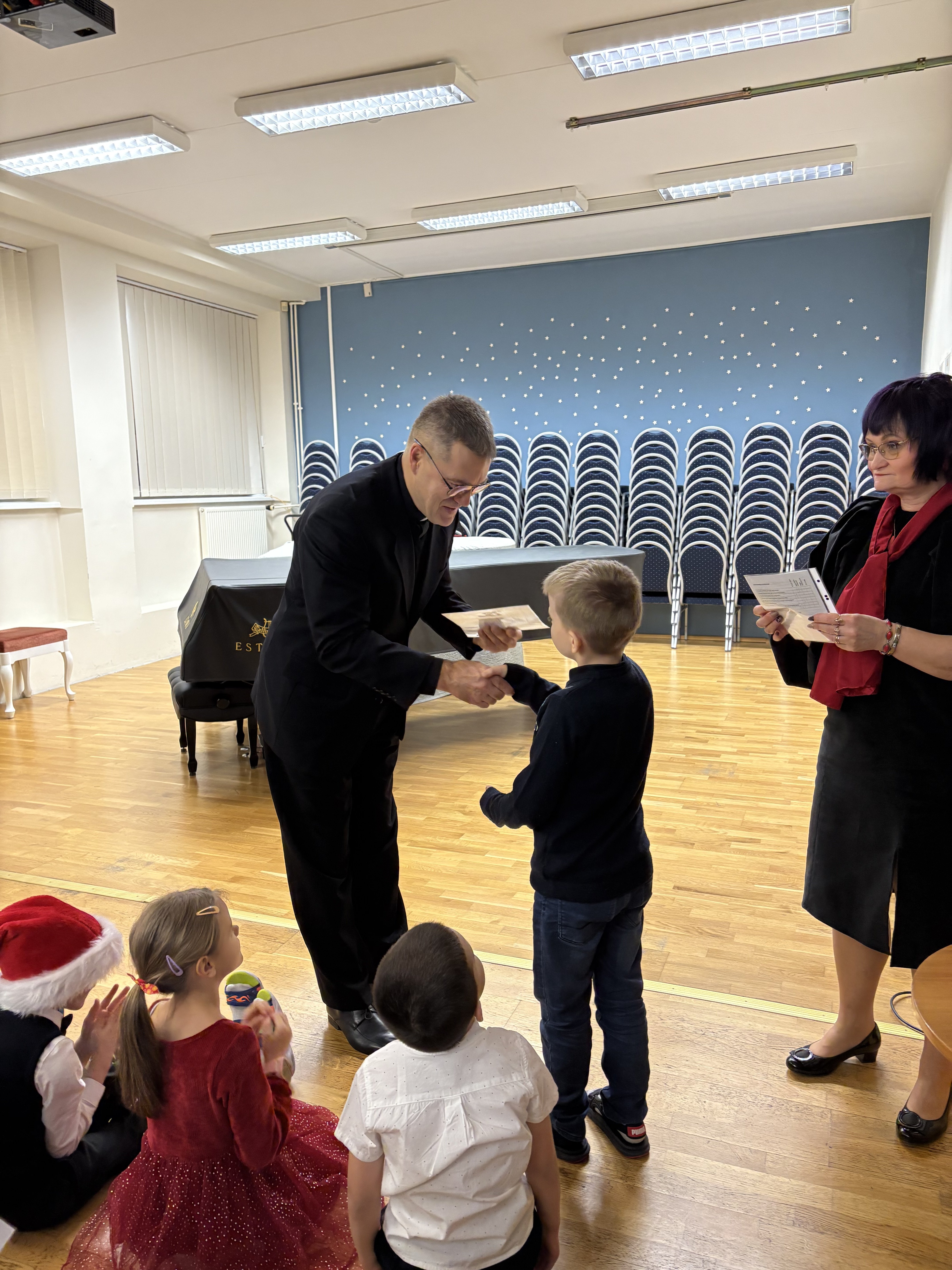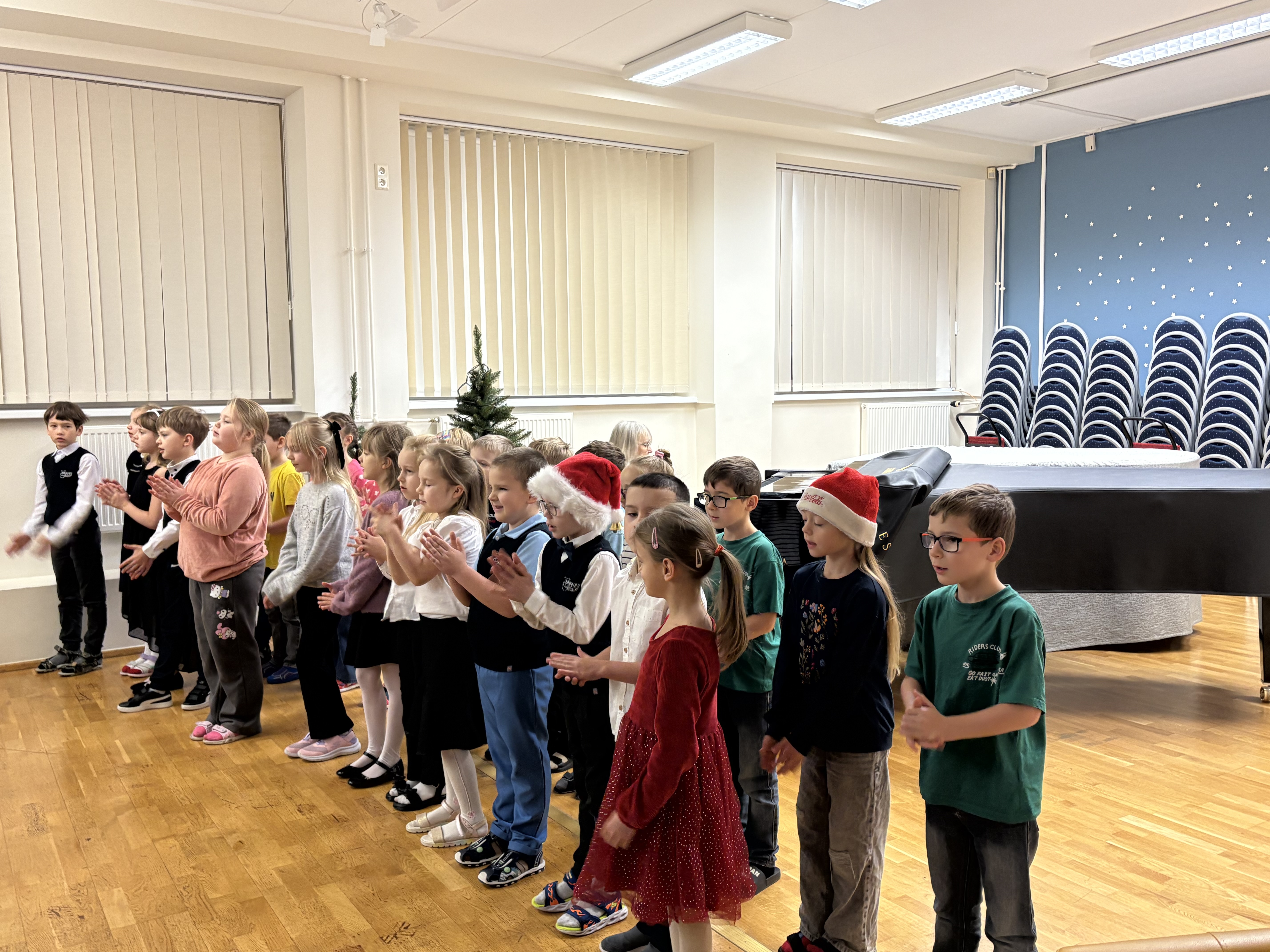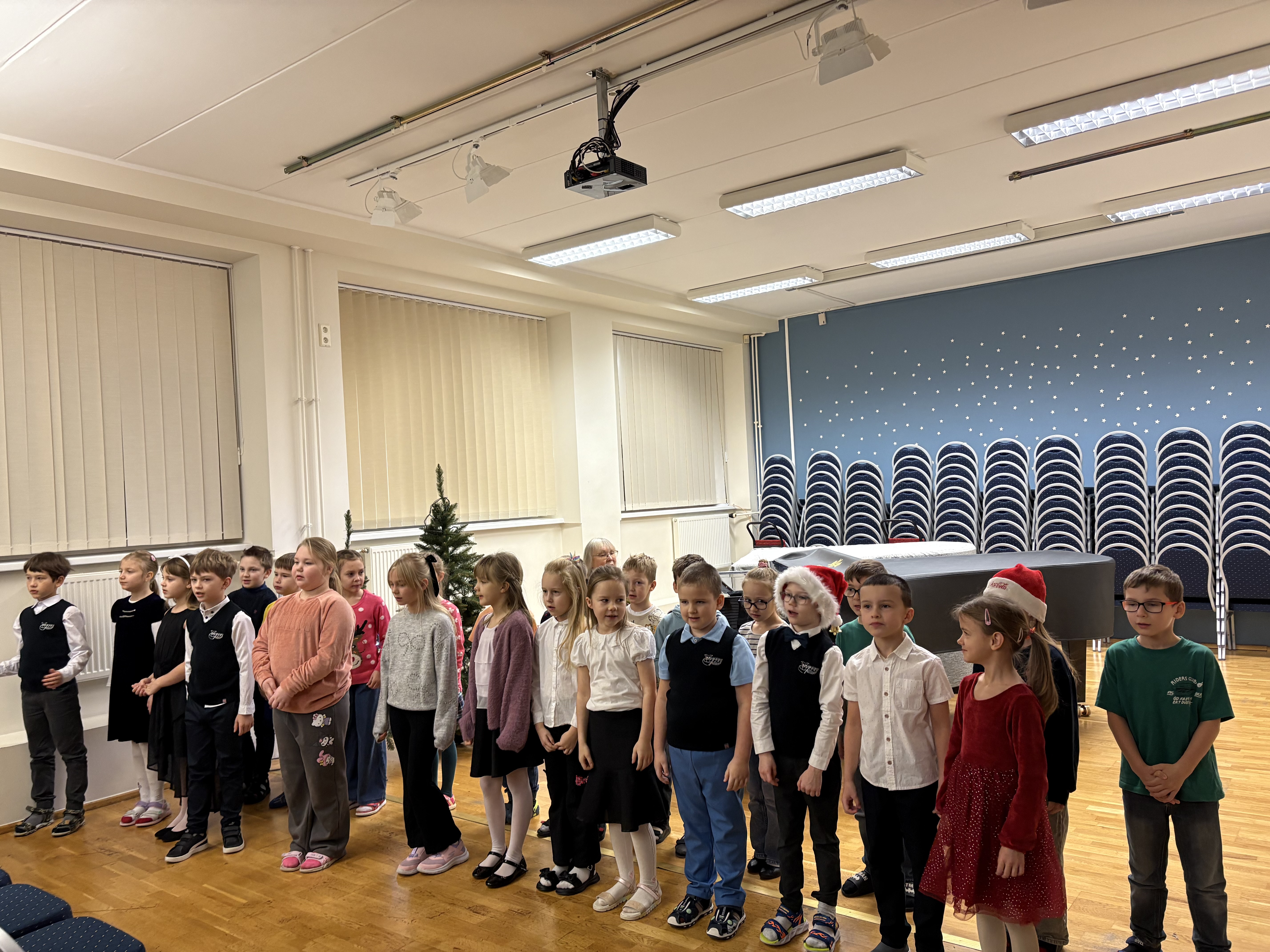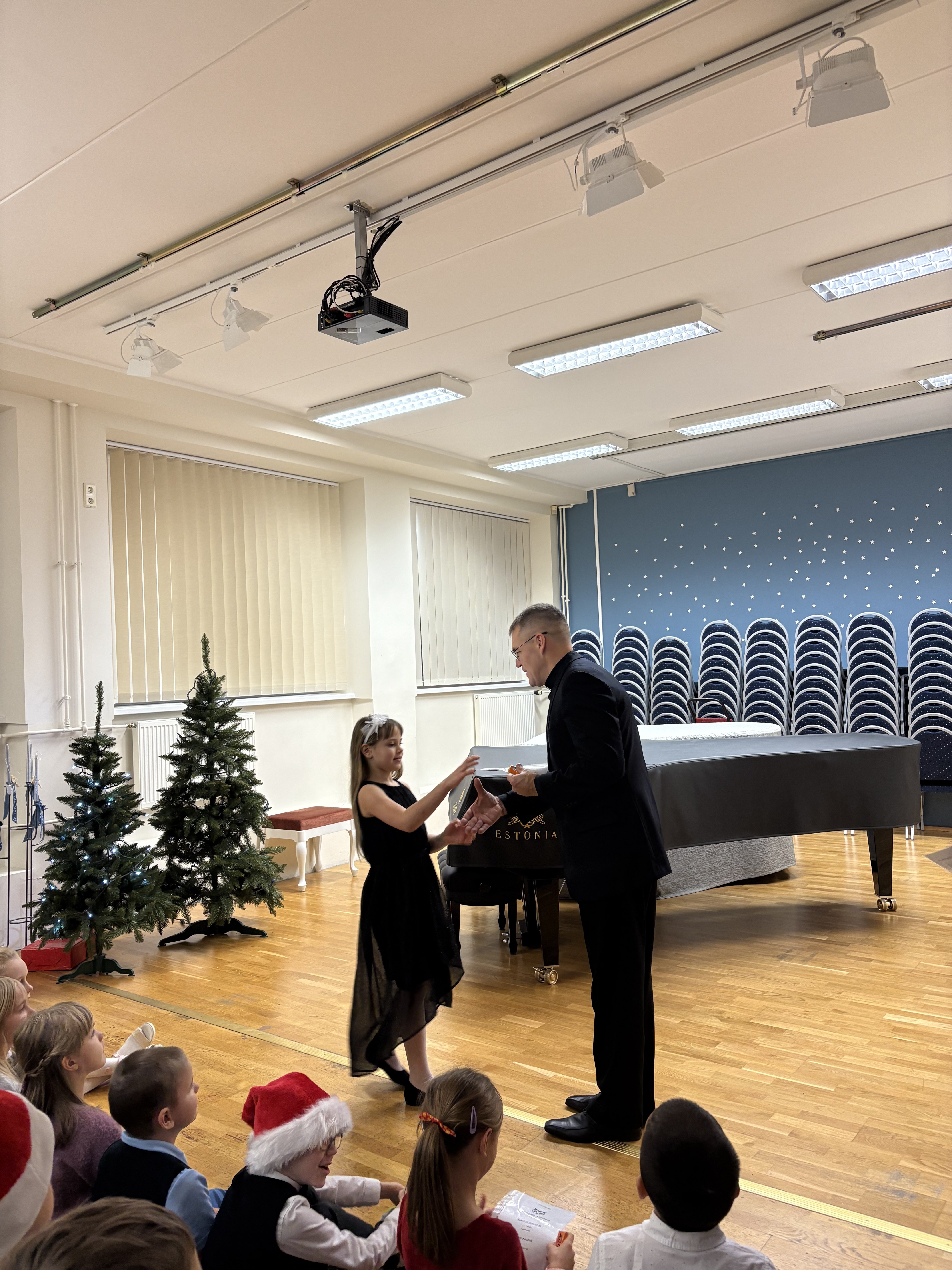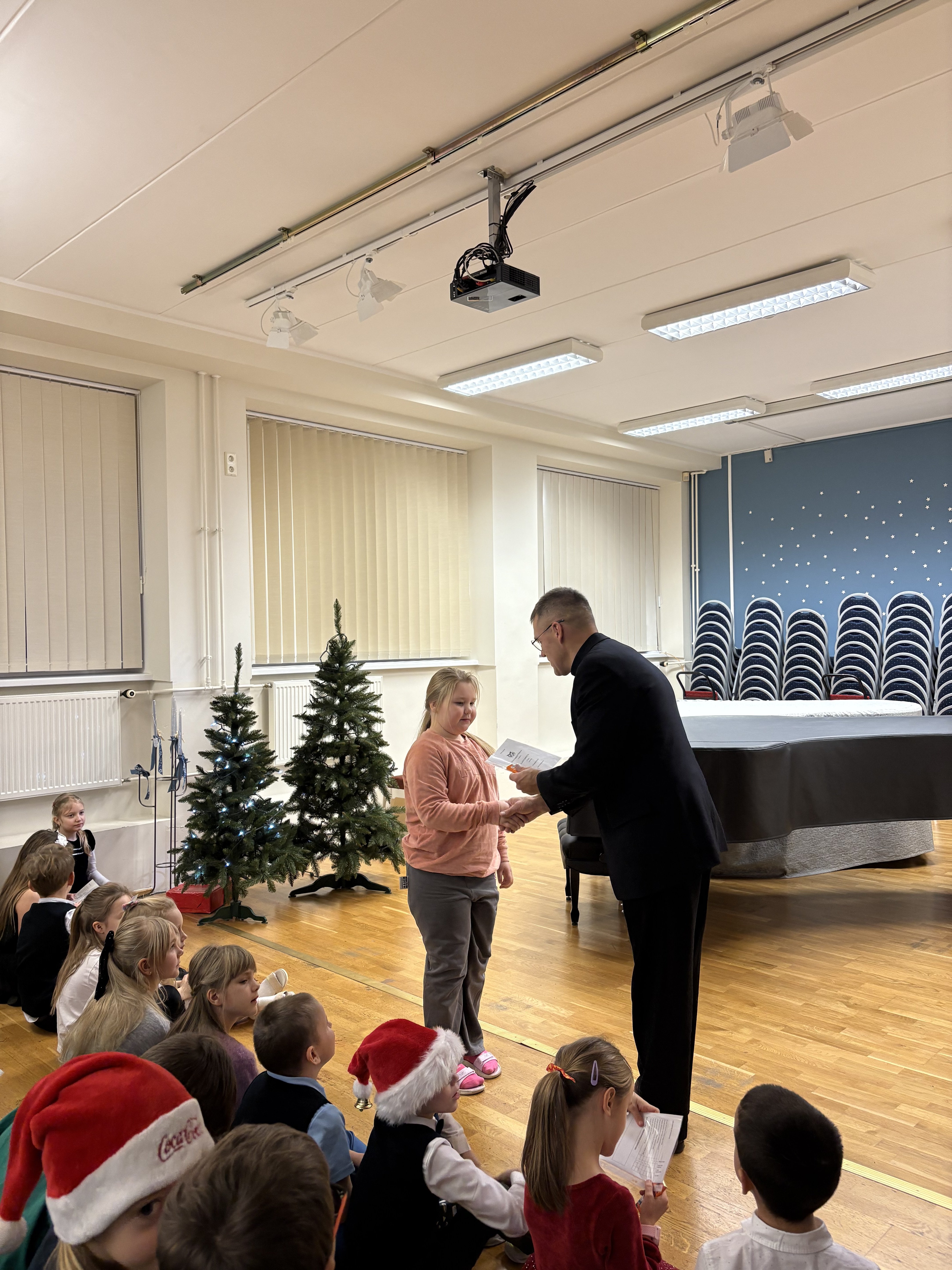 1. klassi õpilased laulsid meile toreda laulu ja esitasid julgelt kauni luuletuse. Direktor Joel rääkis jõuludest ning 1. klassi õpilased said direktori käest oma esimese tunnistuse.
