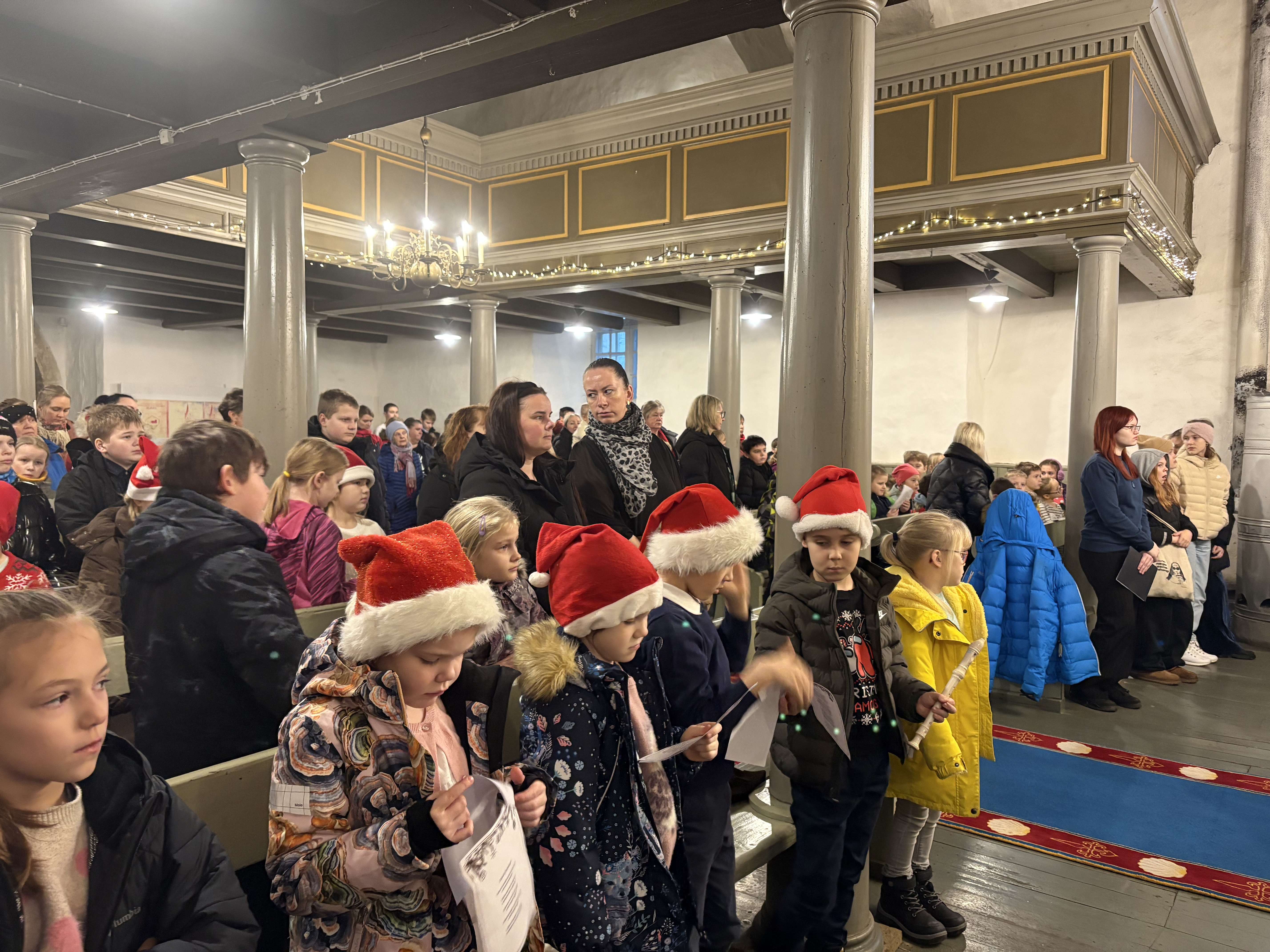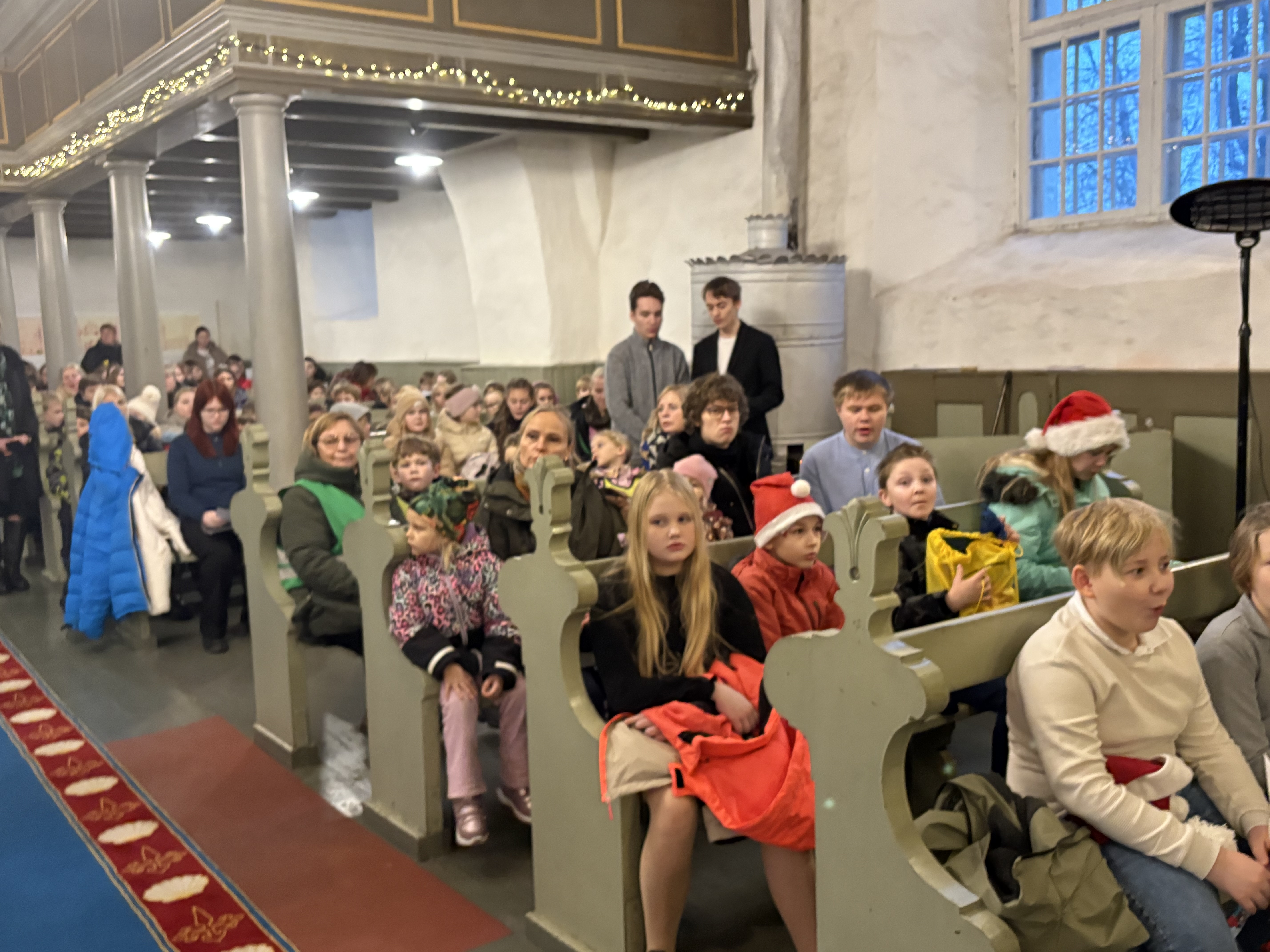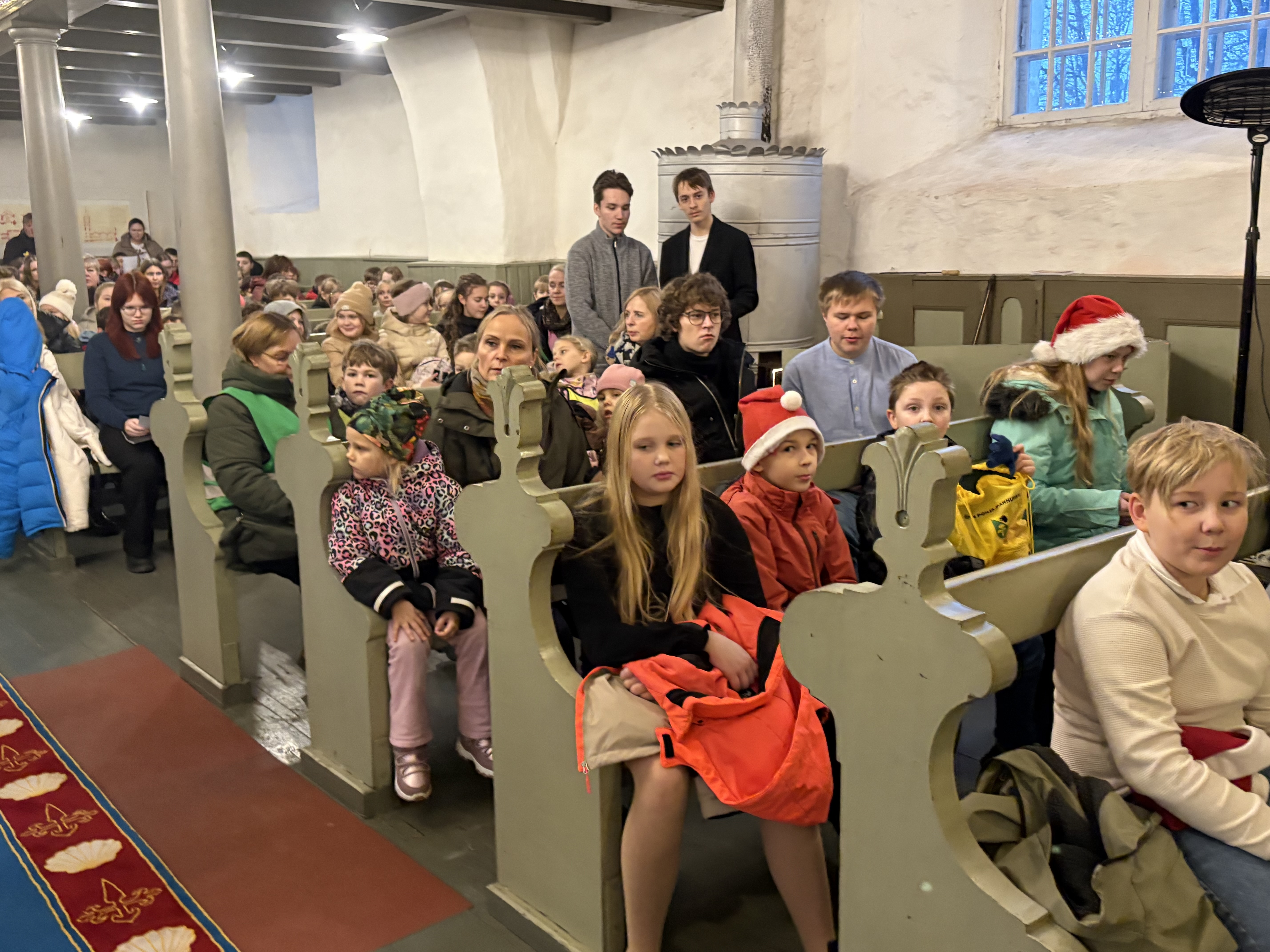 Seejärel suundusime kõik kirikusse. Meie koguduse õpetaja Kristiina Jõgi luges jõuluevangeeliumit, Joel mõtiskles jõulude üle. Kontserdil kõlasid imeilusad laulud ja pillilood, mille olid õpilastele selgeks õpetanud õpetajad Reine, Elena, Siiri ja Triin.