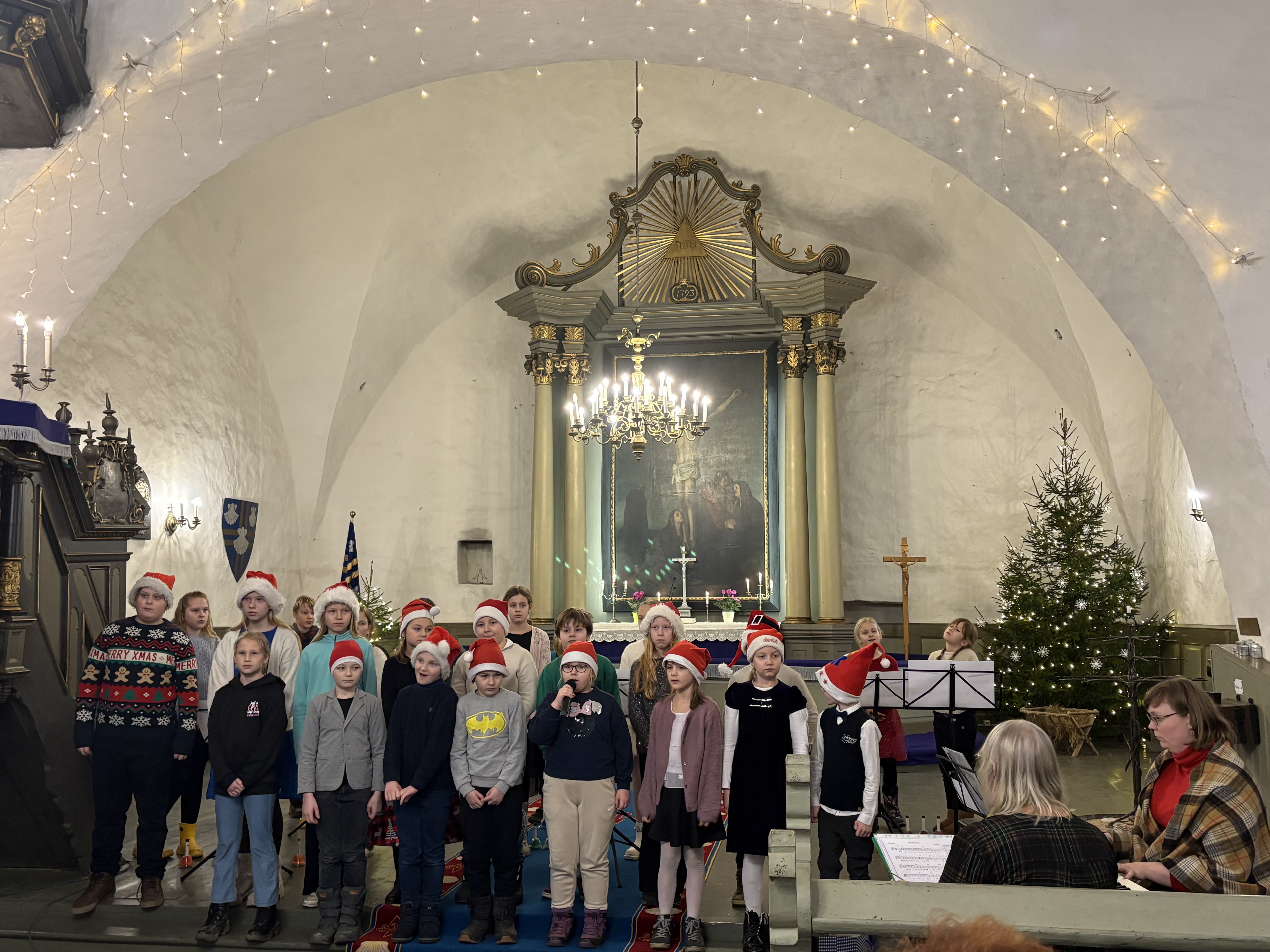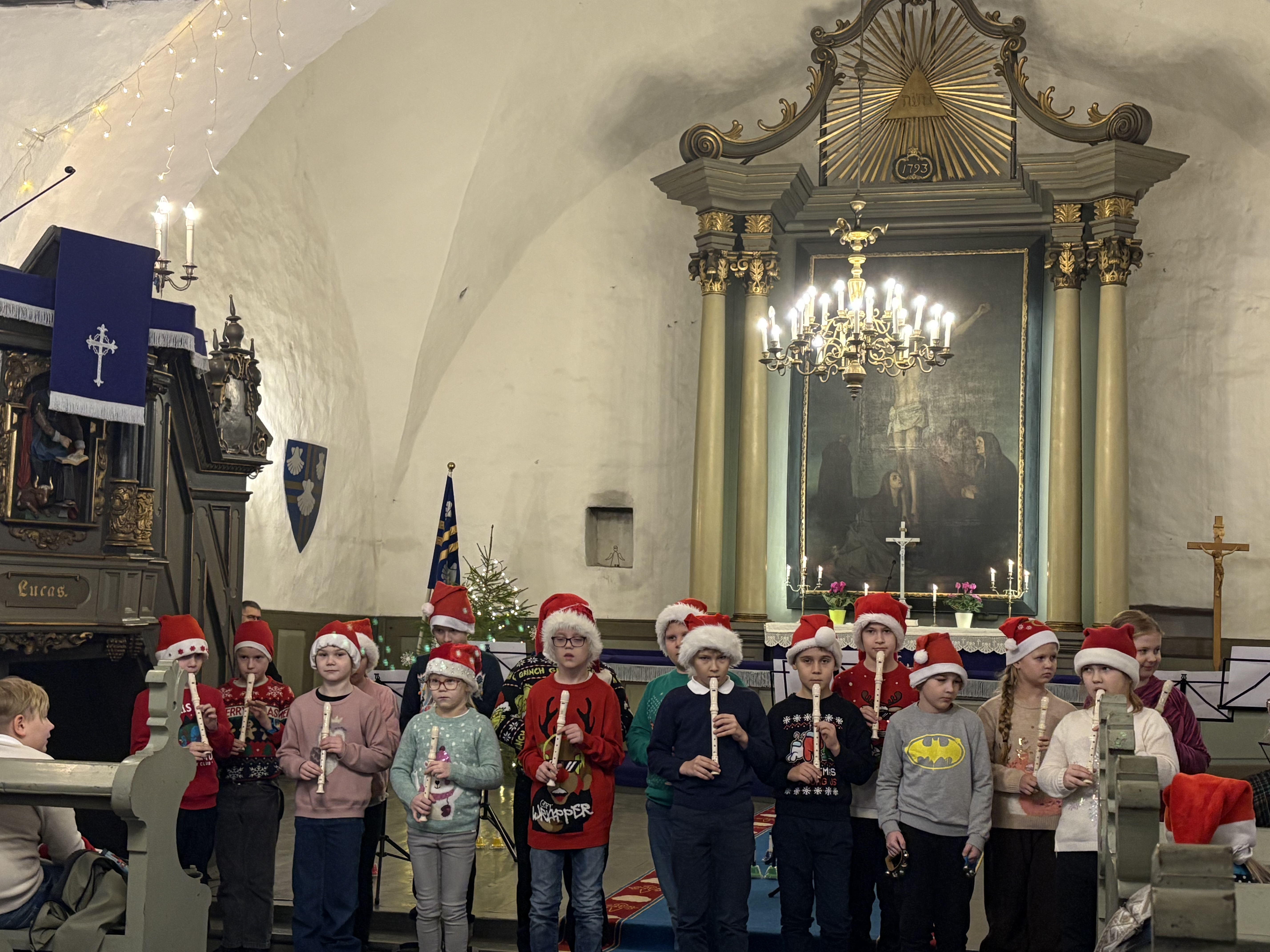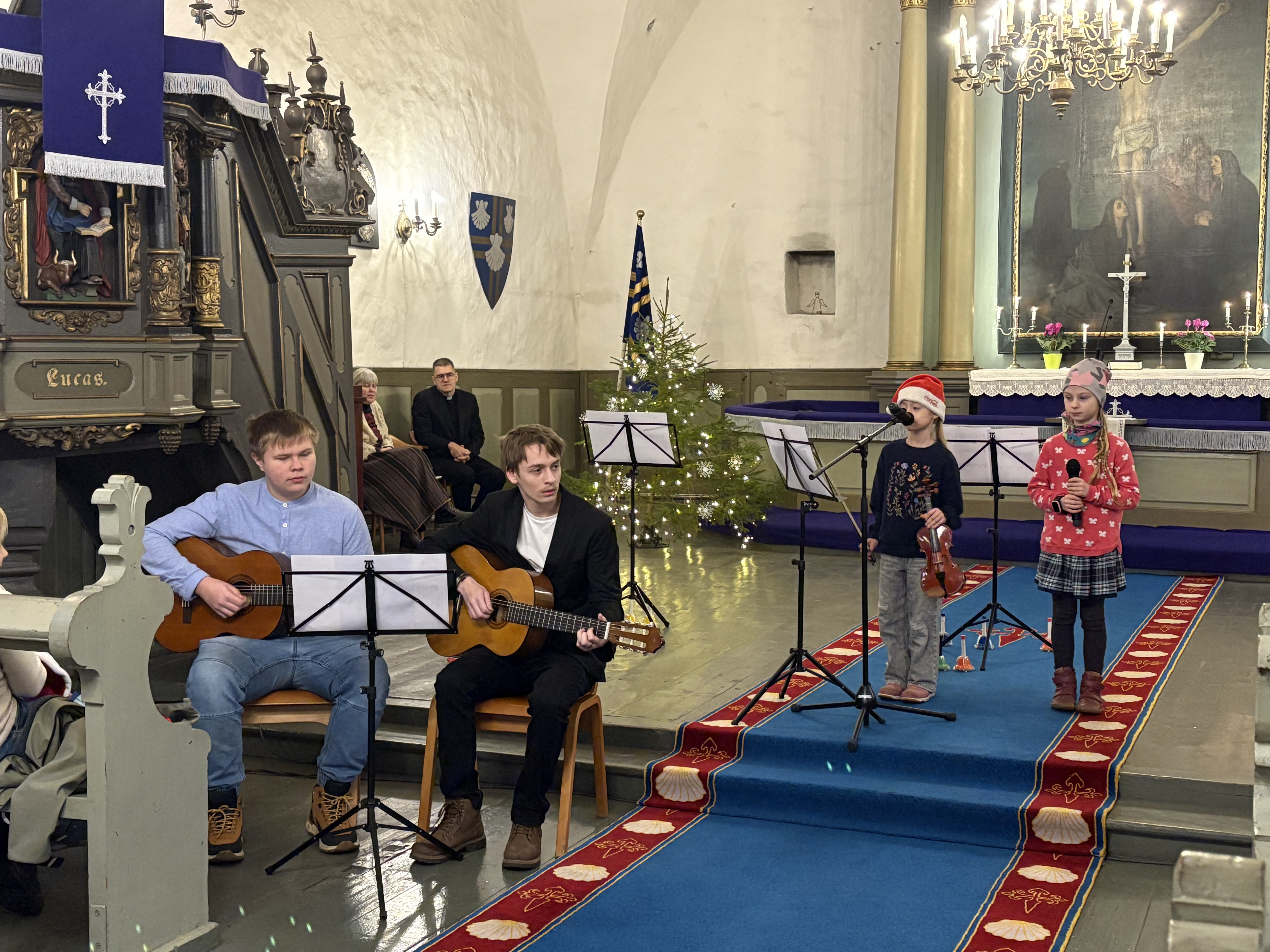 Seejärel suundusime kõik kirikusse. Meie koguduse õpetaja Kristiina Jõgi luges jõuluevangeeliumit, Joel mõtiskles jõulude üle. Kontserdil kõlasid imeilusad laulud ja pillilood, mille olid õpilastele selgeks õpetanud õpetajad Reine, Elena, Siiri ja Triin.